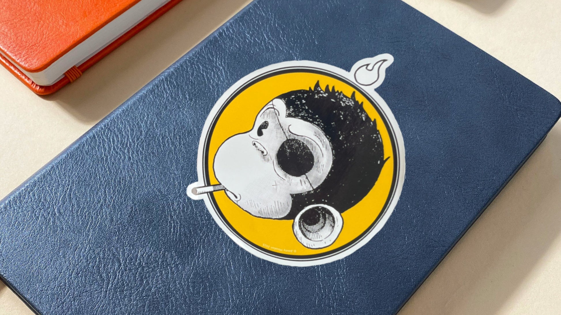 Slap some chaos on your laptop, water bottle, or unsuspecting surface with Rig, the one-eyed smoking monkey who’s seen some things and lit one anyway.