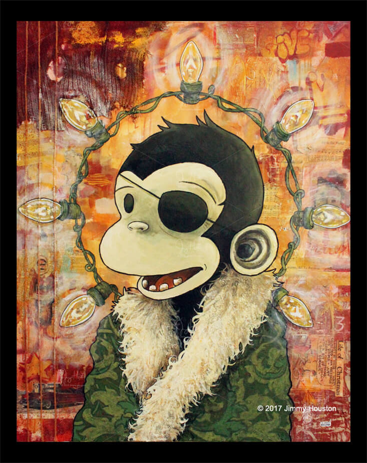 Like an actor in a Charles Dickens stage production, Rig stands surrounded by a halo of vintage bulbs, sporting his well-worn Christmas furs. Hymns of yuletide, words of well wishes and the promises of a new year echo in the background. This piece is a warm and welcomed addition to my annual Christmas collection. Deck the halls!