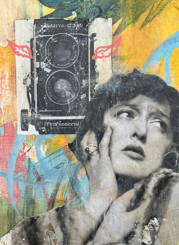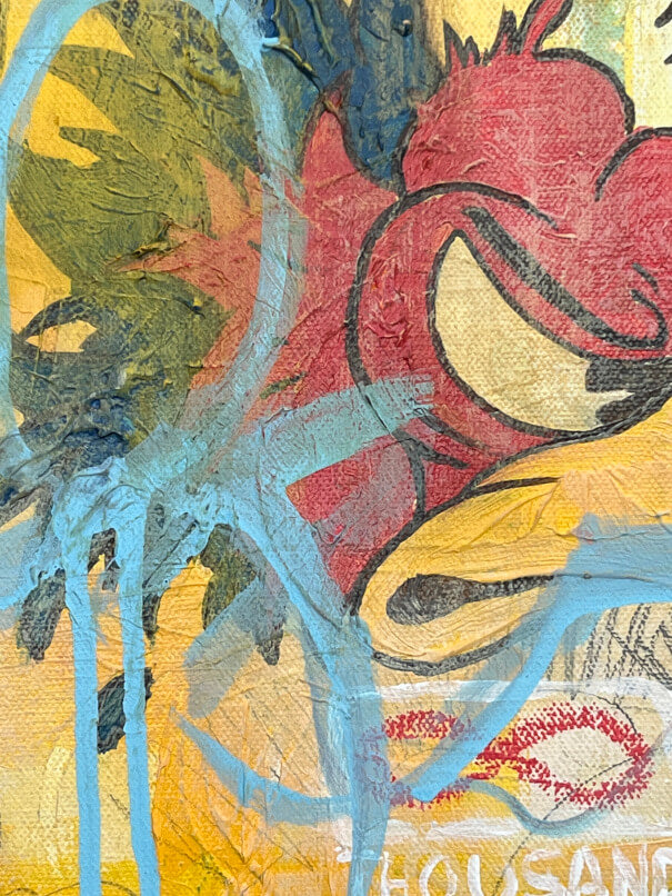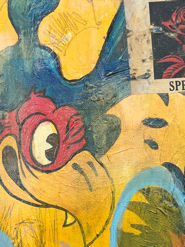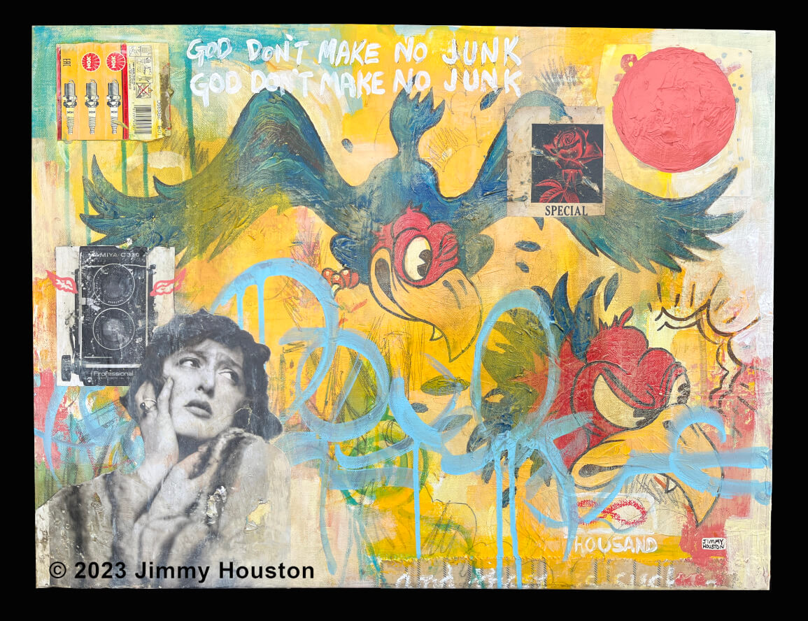 Mixed Media - Acrylic, oil pastel, spray paint, graphite, house paint, paper and fabric on canvas