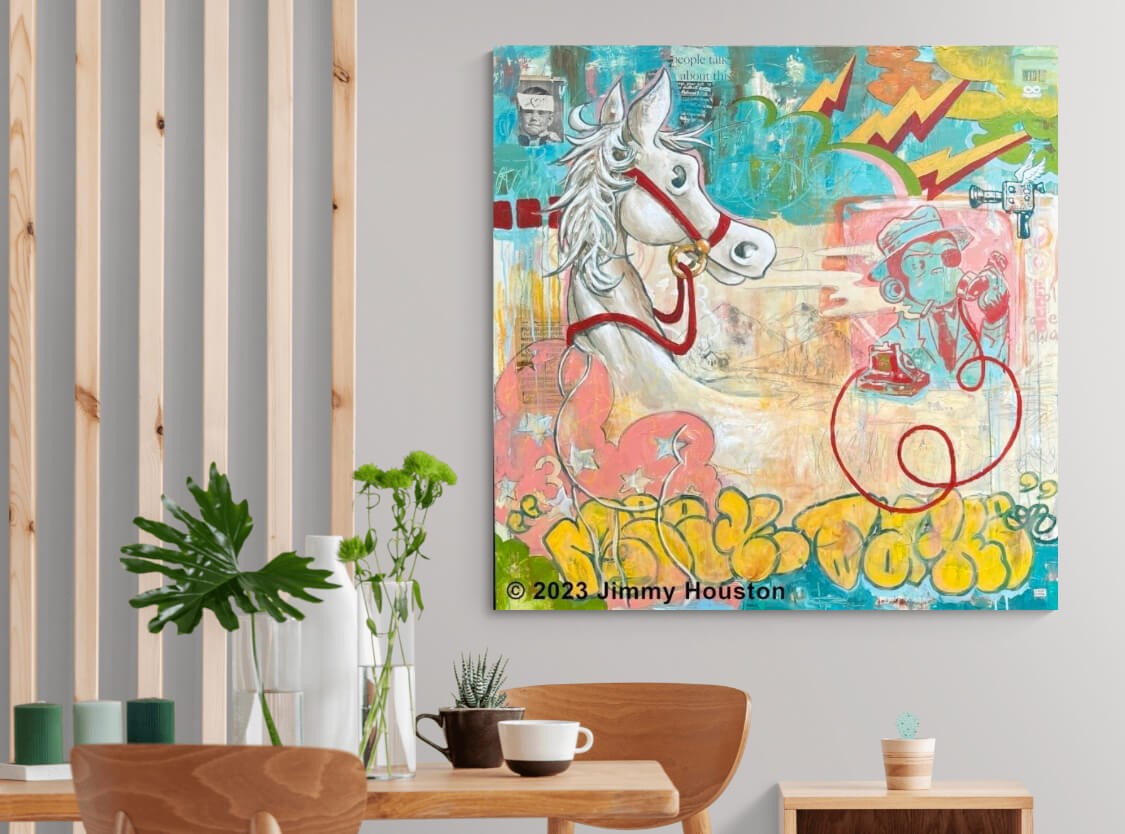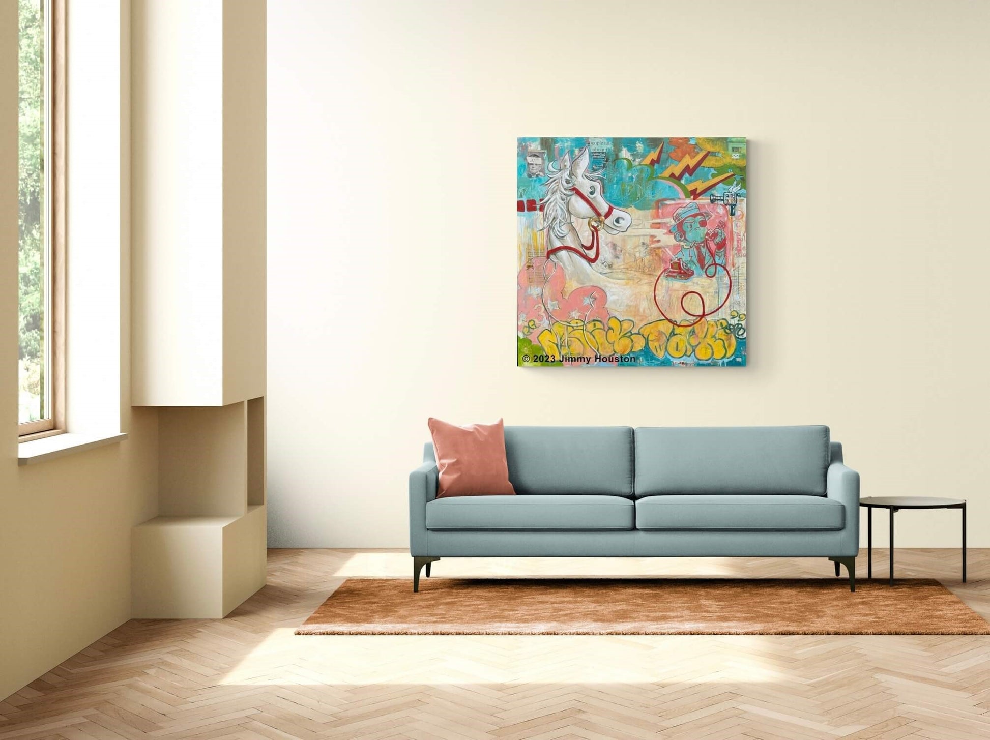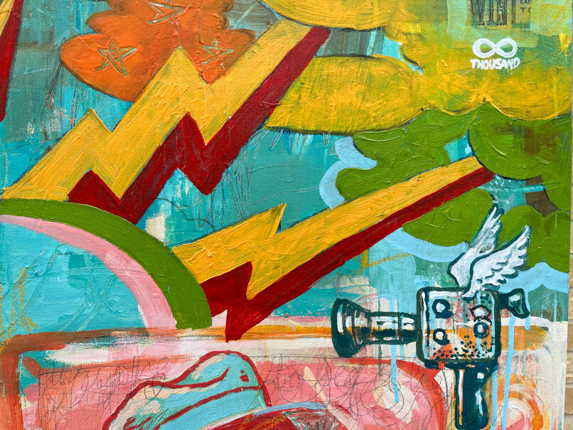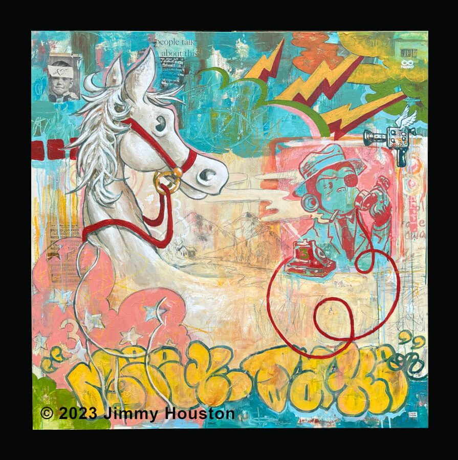 Mixed Media - Acrylic, oil pastel, graphite, paper, house paint and spray paint on canvas