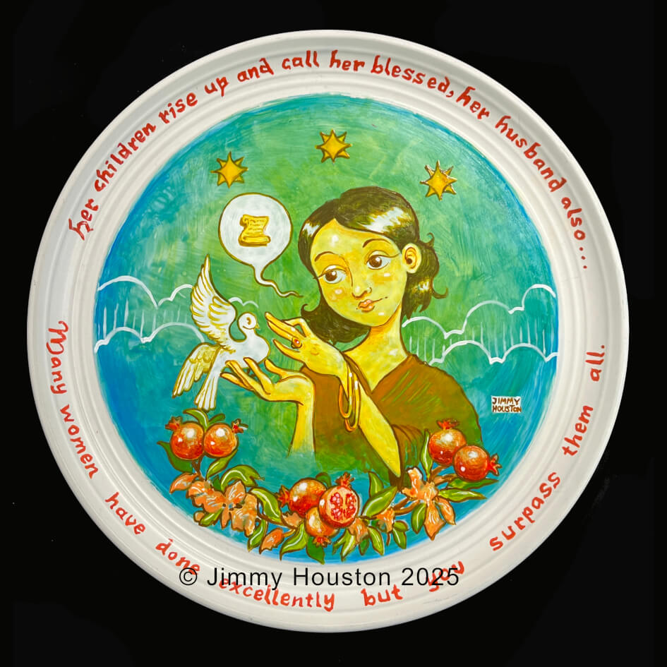 The serving plate itself represents (her) boundless generosity and humility in hospitality to others.
