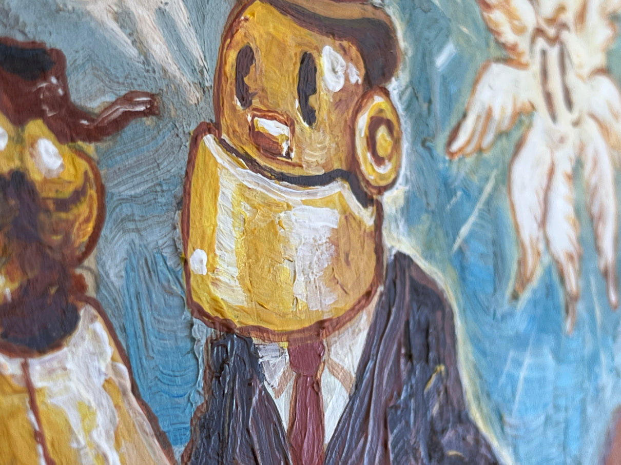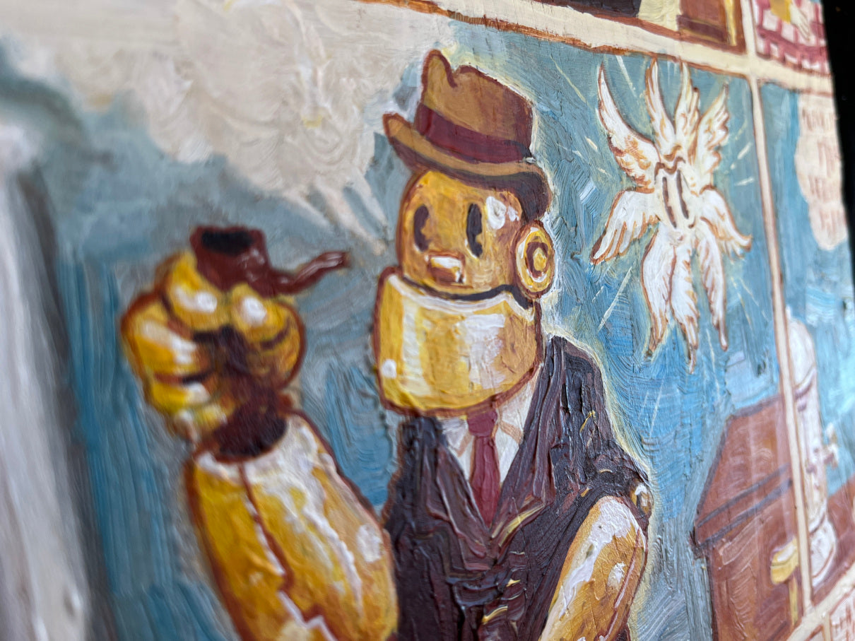 This is a fun little piece exploring thick texture, the nature of spirit and an homage to old comics.